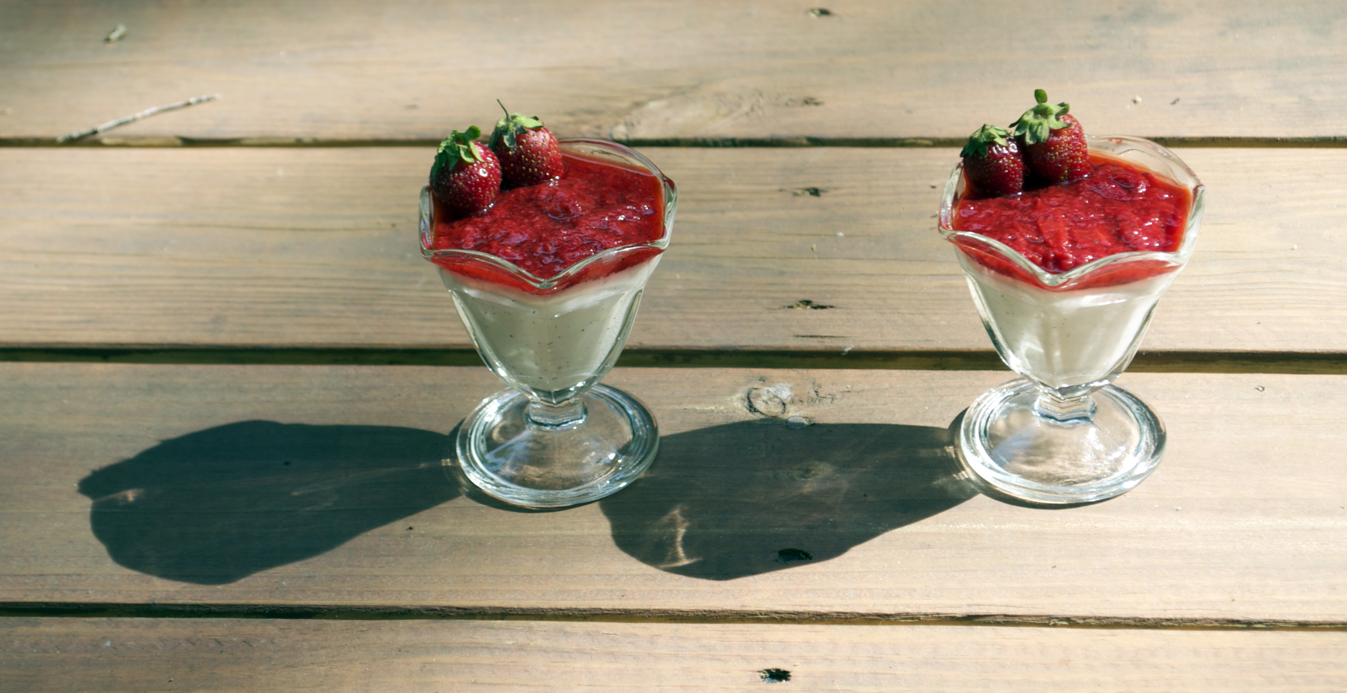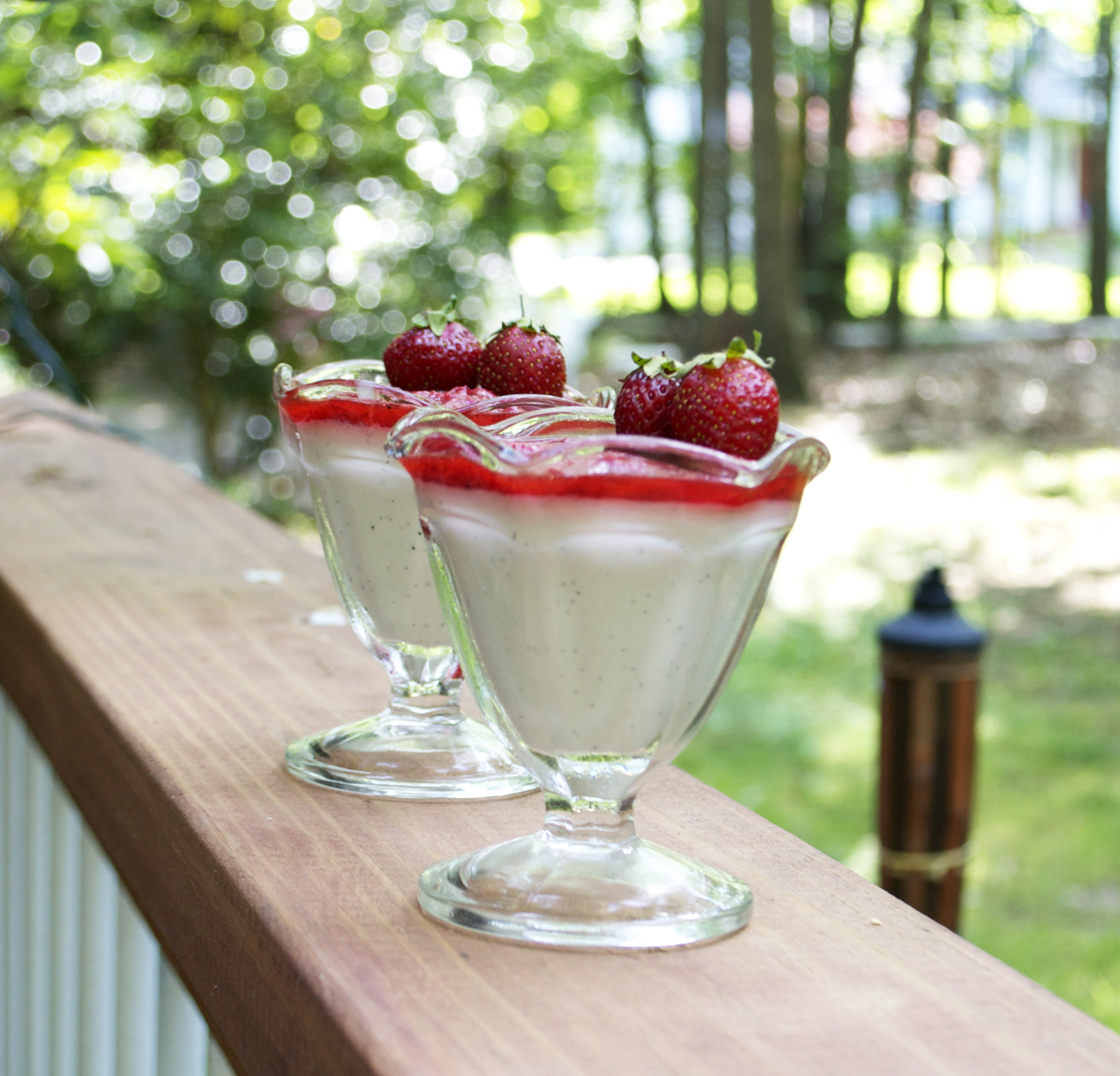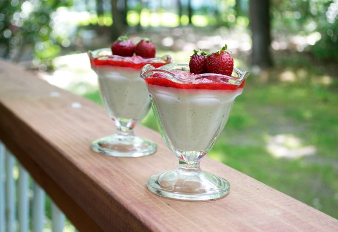Vanilla Bean Panna Cotta with Strawberry Sauce
